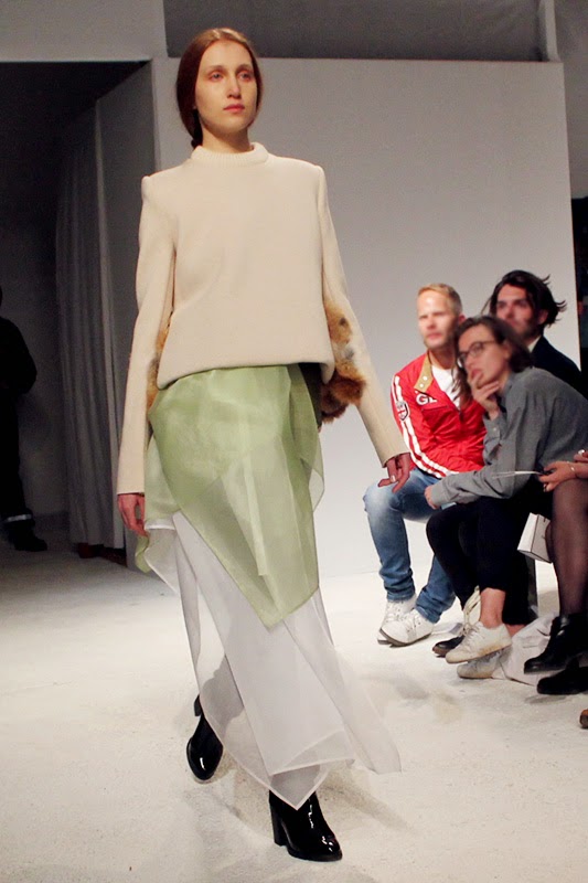 La collection est pour homme mais le modèle pour femme, créé pour le prix Chloé, est tout aussi réussi.