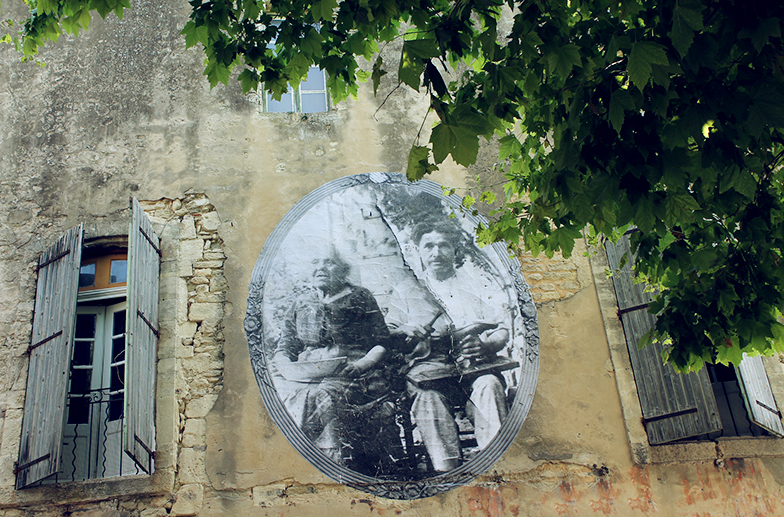 Si comme moi, vous n’avez pas la chance de tomber sur JR se baignant dans la piscine lors de votre venue à la Maison de l’Aiguebrun, vous pourrez vous consoler dans le village de Bonnieux et vous dire « JR was here » devant ses immenses collages situés tous les trois à quelques pas de l’Office de Tourisme (merci à la Madame de l’OT qui nous a narguées en disant que la veille elle avait parlé avec JR, qu’il était super sympa, charmant etc. Snif.).