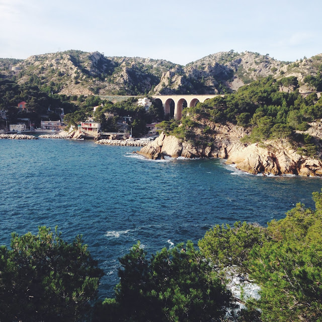 Prenez ensuite le chemin à gauche du port qui vous fera découvrir des panoramas magnifiques. Sur le port lui-même tout d’abord avec un des fameux ponts de la Côte Bleue. Puis sur une belle falaise et le grand large. Le chemin est étroit, en plein milieu de la garrigue entre pins et romarin. Difficile de faire plus provençal !