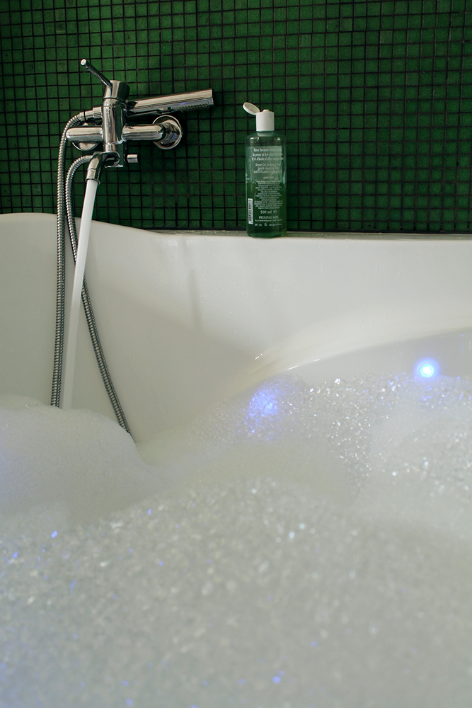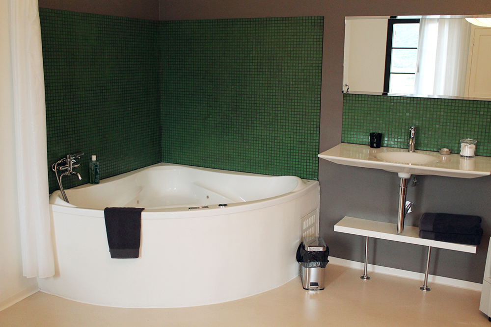 Notre chambre, Opaline, est décorée d’un doux vert. Qu’on soit dans les draps en lin ou sous les bulles aux senteurs Huile d’Olive du bain/jaccuzzi, on se sent comme sur un nuage.
