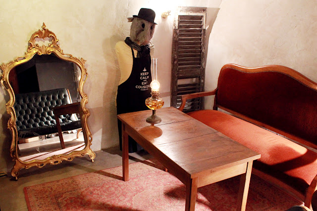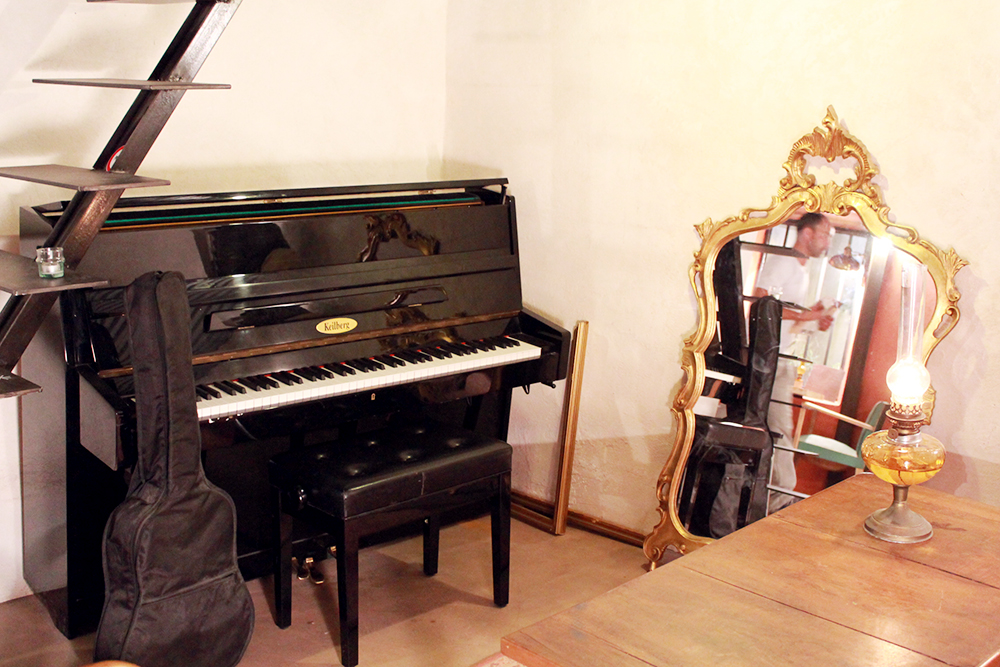 Au fond, on trouve un petit salon, ambiance intimiste avec fauteuil velours, piano, l’ancien four qui peut faire office de barbecue… La salle est parfaite pour un groupe d’amis qui a envie de se sentir seul le temps d’une soirée. Les musiciens sont également les bienvenus.