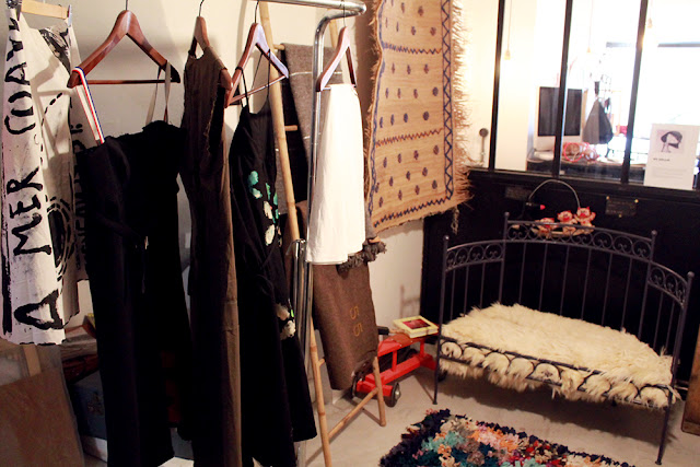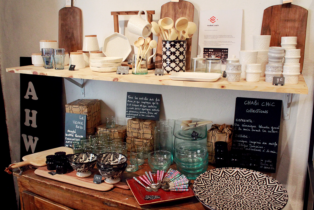 Et ils ne sont pas trop de 2 pour ce lieu immense. Comme divisé en plusieurs boutiques, ou aménagé comme une grande maison, AhWash a une grande salle à manger où l’espace restauration se mêle à un coin déco. On y retrouve par exemple une marque marocaine, dénichée par Amar, où le verre est soufflé à la bouche dans un petit village (n’hésitez pas à lui poser des questions, il saura vous expliquer chaque recoin du lieu avec passion !). Sur le côté droit, deux boutiques de vêtements et accessoires avec notamment des créateurs locaux mais aussi de chics marques parisiennes. Nul doute qu’Amar et Géraldine ont énormément de goût dans les choses qu’ils sélectionnent. Ils ont également du talent. Amar retape des meubles, les vend mais aussi s’en sert de déco comme un instrument de musique transformé en lampe.
