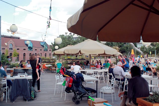 Autre lieu vraiment cool, toujours dans un immense hanger, le Cargo dans le Parc Spoor Nood. Lieu plus familial car il est dans un parc, à 20mn du centre-ville (d’où l’utilité du vélo; forcément il y a des bornes de vélo juste devant le parc, trop forts ces anversois). Le bois est encore présent pour donner cette petite touche récup/vacances à la cool, bar, four à pizza, petite cabane intérieure, terrasse devant les jets d’eau… Parfait pour passer la fin d’après-midi.