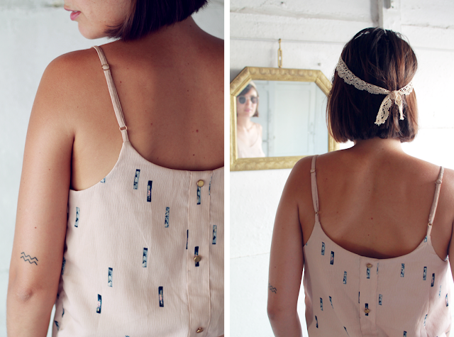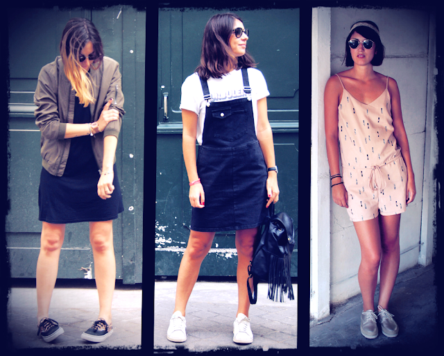 Cela fait des mois que je rêve de derbies brillantes. Forcément, j’ai tout de suite flashé sur ce modèle à la fois cool avec le côté espadrille mais aussi chic. En revanche, la paire n’est pas très facile à porter. Du coup, fallait bien trouver le reste de la tenue qui irait avec. Ayant aussi cherché une combi short tout l’été, celle-ci tombait à pic. Je suis restée dans les couleurs claires, avant de sombrer définitivement dans les couleurs d’automne. Du coup, ça donne un look pas vraiment définissable. Pas très rock, pas forcément urbain mais quand même à la cool (surtout quand on troque les derbies contre des Airmax claires).