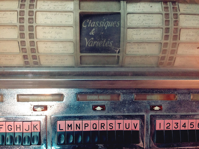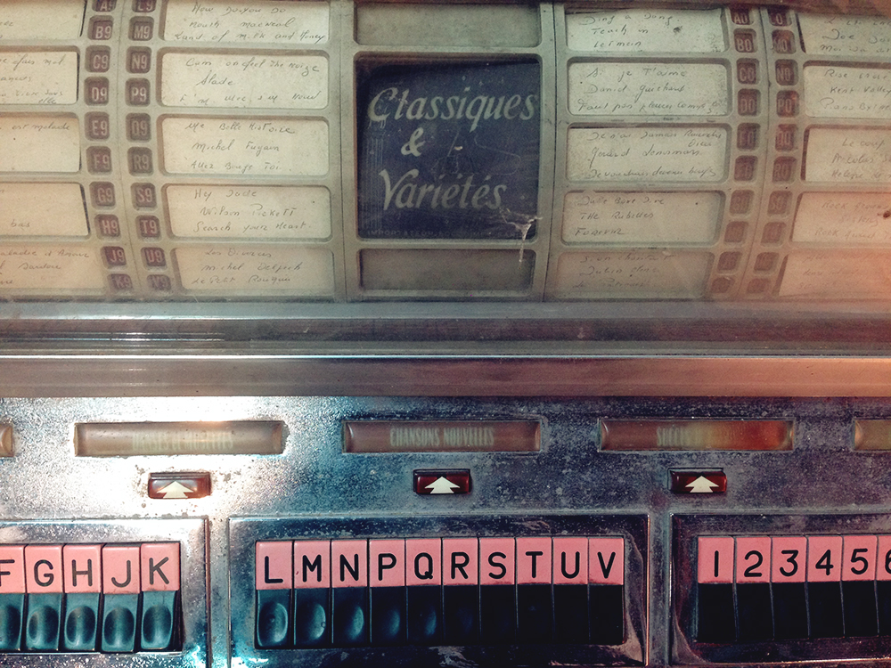 Ceux qui ont connu la brocante à cette époque doivent se dire que « c’était mieux avant ». En effet, le rez-de-chaussée de ce gros hangar destiné aux chineurs de belles pièces est un peu pauvre. De nombreux vendeurs semblent avoir baissé le rideau. Mais à l’étage, c’est une grande caverne vintage. Côté prix, ça contraste énormément avec le reste des Puces mais il y a de telles pépites… Comme ce jukebox aux titres de chansons écrits à la main.