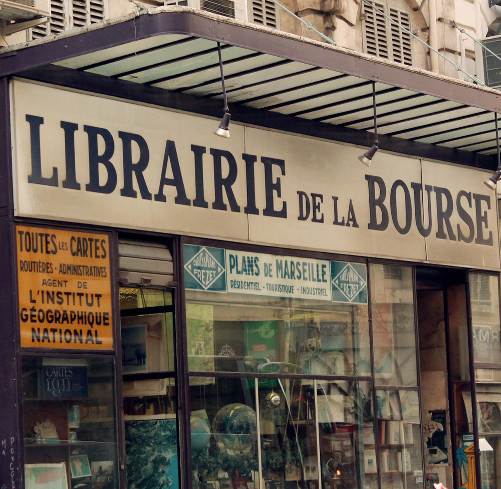 La librairie de la Bourse, également connue sous le nom de Maison Frézet a été fondée en 1876. Depuis, 4 générations se sont succédées pour faire perdurer ce trésor familial. Spécialisée dans les cartes, la Maison Frézet a même édité sa propre carte de Marseille dont les détails sont tels qu’elle a été une référence pour les taxis. La librairie dispose de 5000 cartes du monde entier !