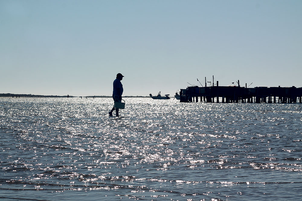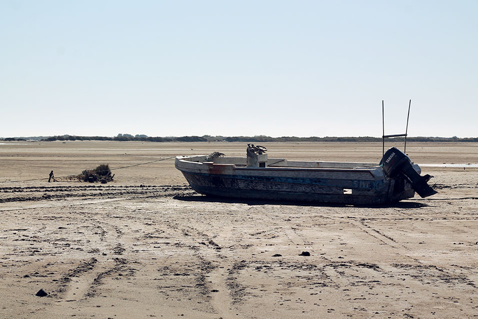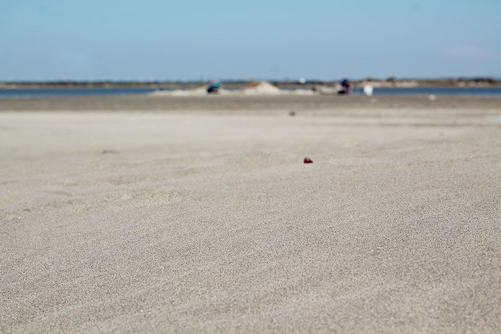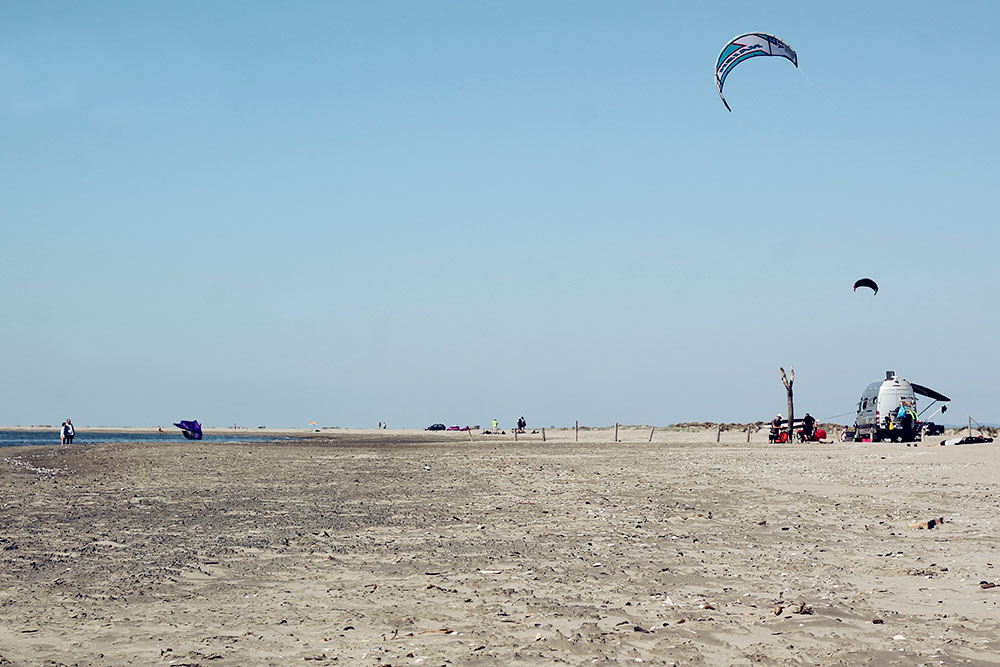 On arrive ensuite sur la fameuse plage de Beauduc. Pas de kitesurfeurs finalement mais il faut dire que le vent est très doux. Quelques caravanes/fourgonettes donnent un air résolument folk à l’endroit. Il y a également des pêcheurs de tellines, ces coquillages que l’on ramasse sur les bords du Rhône et en Camargue. Ici, le rapport à l’eau est différent. Comme en Bretagne, elle n’est pas un simple lieu de farniente, mais une activité en soi. On y pêche, on y pratique du kite, du cerf-volant… On l’apprécie finalement davantage.