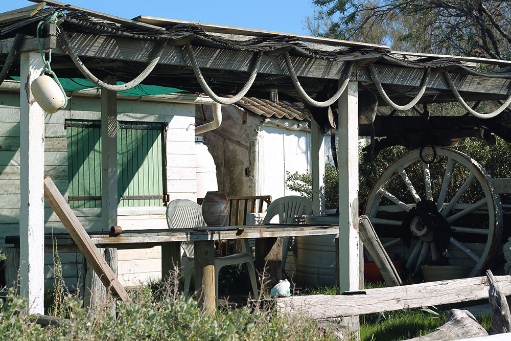 Les étendues sauvages sont tellement vastes. Le lieu est incroyable. Un peu plus loin, on tombe sur le village de Beauduc. Les vieux cabanons donnent l’impression d’un village de western abandonné. Quand on dit que les gardians de Camargue font penser à des cowboys, ici le lien avec le Far West est encore plus fort.
