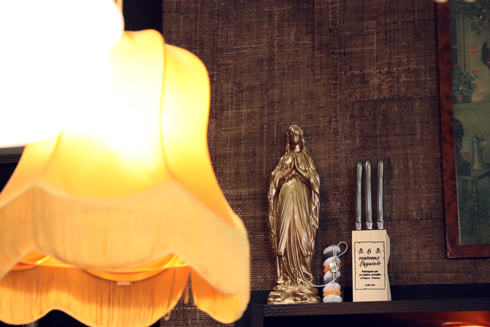 Si l’on est toujours reçu très chaleureusement, la déco est tout autant accueillante. La tâche a été donnée à la mère de Jean-Christophe, décoratrice d’intérieur au grand goût. Belle vaisselle, luminaires vintages, plantes à foison, tapisserie ancienne… Tout est beau.