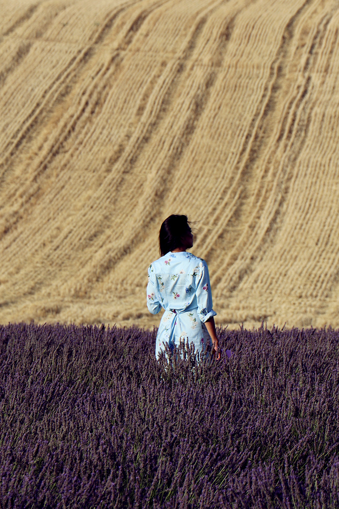 – Mettez sur votre GPS « Lavandes Agelvin ». C’est une distillerie que vous pourrez visiter mais surtout le bon repère pour être au milieu de ces grands spectaculaires. Par contre, je n’ai pas trouvé LE spot avec le petit cabanon au milieu. Si vous avez des indications, je suis preneuse !