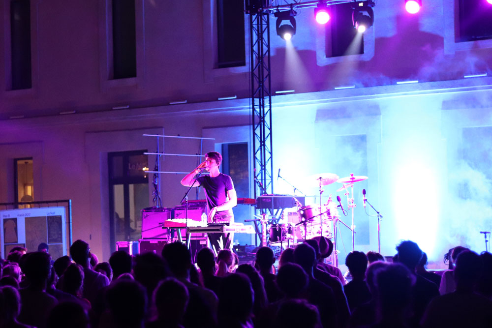 D’ailleurs, quelques mots sur l’ambiance du Mucem PlanB. Un espace chill avec coussins et tapis stylés, des petits trucks pour la food, et même les glaces alcoolisées Maison Crespi que j’avais déjà goûtées au Café de l’Abbaye (la « mojito fraise » est trop bonne), un petit bar Lillet et le reste géré par les Jardins Suspendus. Le jardin autour de la place d’Armes a bien poussé depuis l’ouverture du Mucem donnant un petit côté garrigue à l’esplanade (ok, j’abuse peut-être un peu). On déambule, on voit tantôt la Bonne Mère en fond, tantôt le Mucem et la Villa Méditerranée, éclairés… C’est beau, vraiment. Ce Mucem Plan B a tout d’un bon festival d’été intimiste et c’est peut-être la première fois de l’été qu’on ressent autant l’ambiance chill dans un festival marseillais. Bien joué !
