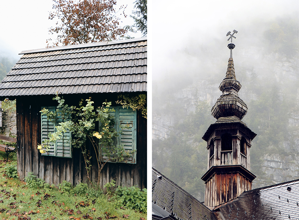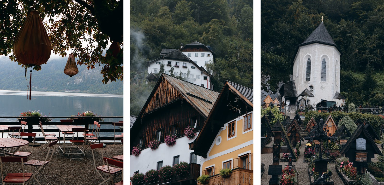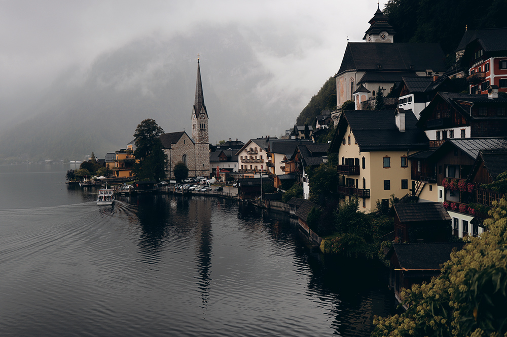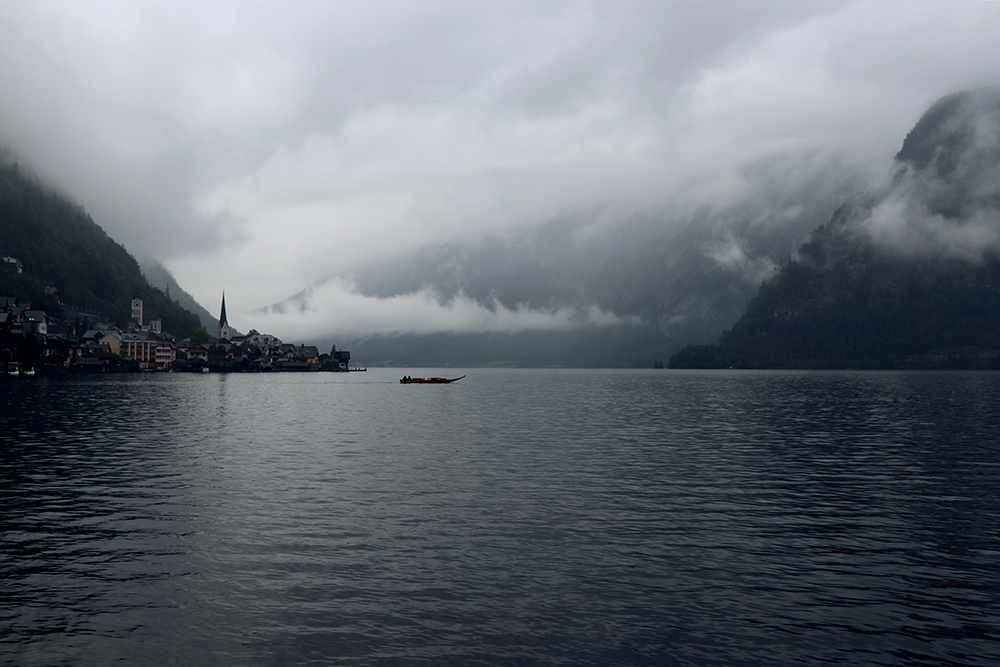 C’est à une heure de Salzbourg que se situe Hallstatt, le village carte postale de l’Autriche. Ce jour là, le temps est comme on le souhaitait. Les cimes des arbres sont brumeuses, la pluie ne tombe pas, l’atmosphère n’est pas angoissante mais juste intense. On longe le Hallstatersee en étant émerveillés par cette brume caressant les monts. Puis, on aperçoit le fameux clocher de Hallstatt. Une fois dans le village, c’est la perfection, la mignonitude incarnée. Les touristes (notamment asiatiques) sont nombreux certes mais ça reste vivable. On prend chacune des petites ruelles. Les chalets décorés, les boutiques de souvenirs, les petites avancées sur le lac, la cascade au dessus du village, les clochers… Tout est beau. On aperçoit parfois une longue barque traverser le lac noir. À ce moment-là, le temps semble s’arrêter. Il faut le vivre pour le comprendre.