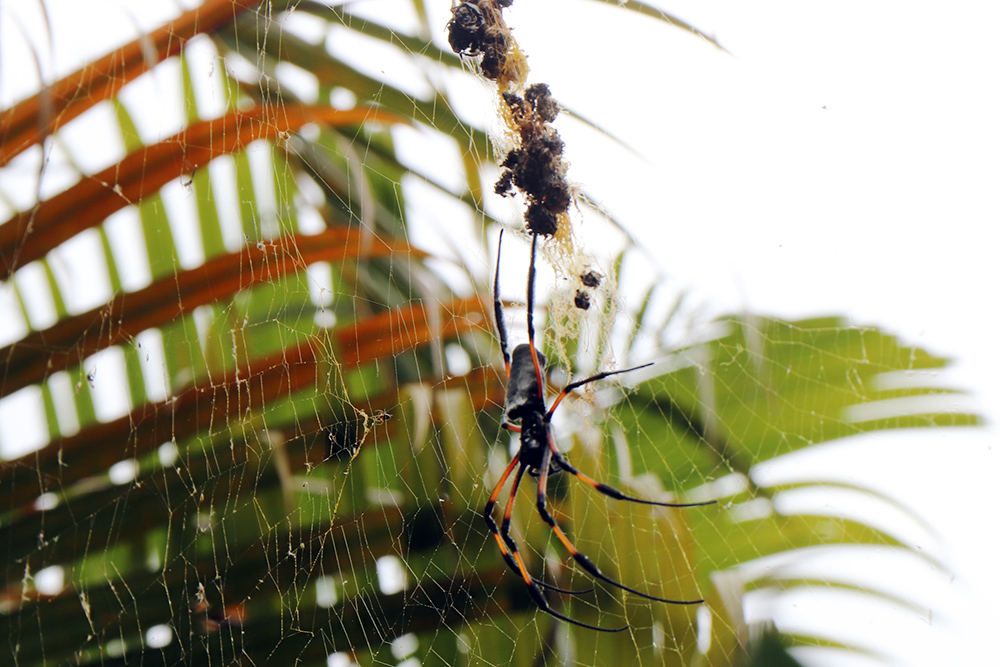 Quelques mots sur la faune. L’île étant sortie de nulle part, il y a donc peu d’animaux. Mais on trouve de sublimes oiseaux aux couleurs incroyables. L’avantage aussi c’est qu’il n’y a qu’une seule espèce de grosse araignée. Nous l’avons vue une fois. La jungle parait moins effrayante tout à coup !