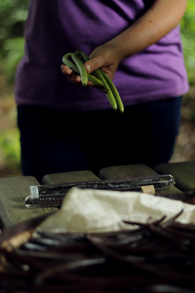 - Plantation Vanilla Bourbon : Maryse est une zoreille = moldu version Réunion. Toulousaine d’origine, elle s’est installée sur l’île Bourbon en 1992. En 1998, elle investit la forêt primaire des hauteurs de Sainte Rose pour créer sa plantation de vanille, une filière délaissée car très difficile. En 2006, ses efforts portent leurs fruits et elle peut enfin lancer sa production. Tout est fait à la main, chaque graine plantée dans la forêt, chaque liane observée chaque jour (car oui, la plante de la vanille est une liane), chaque nouvelle fleur bien surveillée pour qu’elle devienne ensuite une belle gousse verte que l’on ramasse pour la faire sécher. C’est là qu’elle devient noire et odorante mais il y a tout un procédé de séchage à respecter. Ce processus est malheureusement rarement suivi chez les producteurs qui vendent au marché par exemple. Faites bien attention à ce que vous achetez.