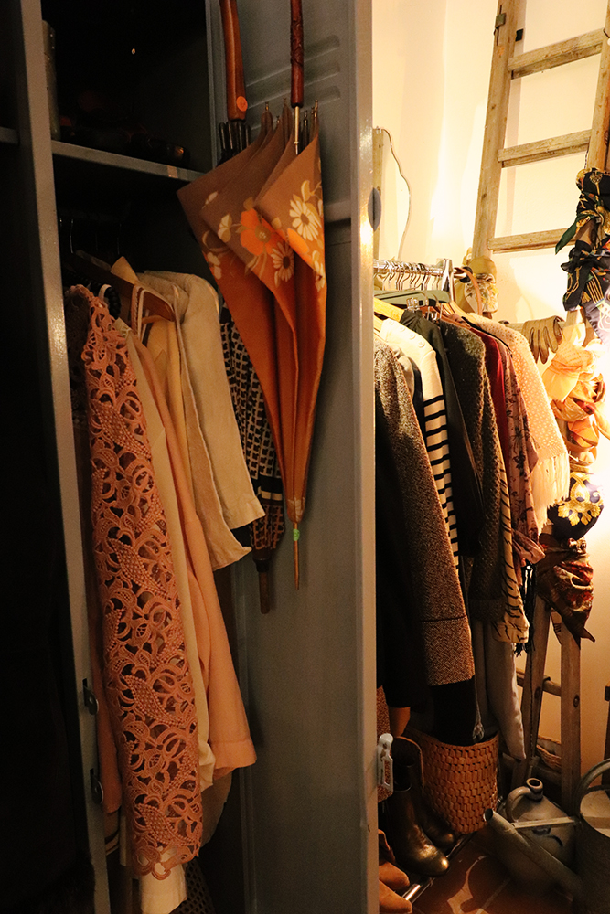 La sélection de la brocante change régulièrement. D’ailleurs, mes photos datent d’il y a un an tout pile; la déco a changé depuis. On y trouve de tout. Eléments de décoration vintage, cigales en céramique, dressing vintage et bohème, vaisselles, cadres et affiches hors du temps, landau ou chaise en rotin, petites plantes… Ici, vous aurez la même impression que lorsque vous êtes chez vos grands parents… chez qui vous dénichez des pépites, parmi leur déco, que vous verriez bien chez vous… sauf qu’ils ne sont pas vraiment d’accord pour vous donner telle assiette ou telle dame Jeanne. Alors que Chez Rita, tout s’achète !