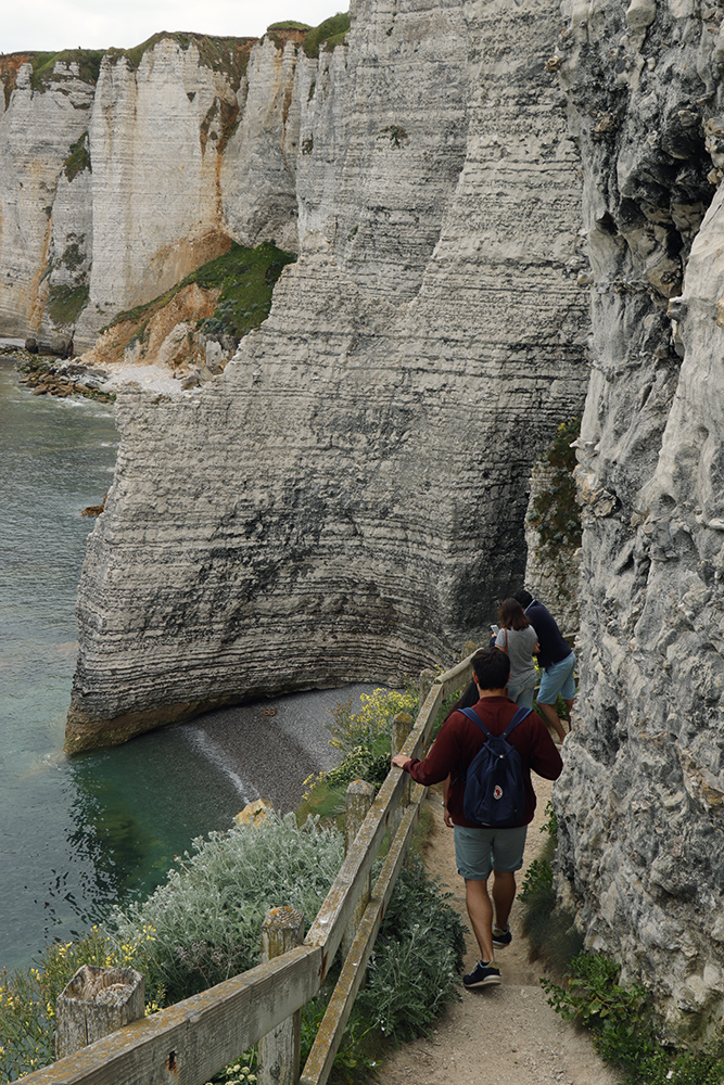 On s’arrête souvent en chemin pour admirer la vue sur la falaise d’Aval avec sa porte et son aiguille. Les fameuses ! Depuis le temps que je rêvais de les voir !