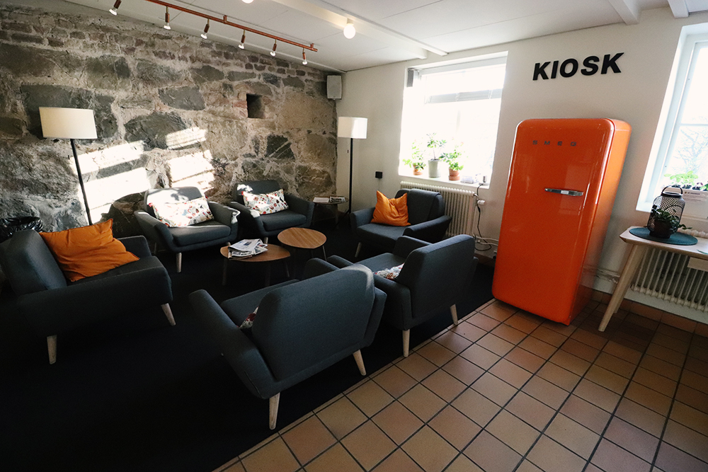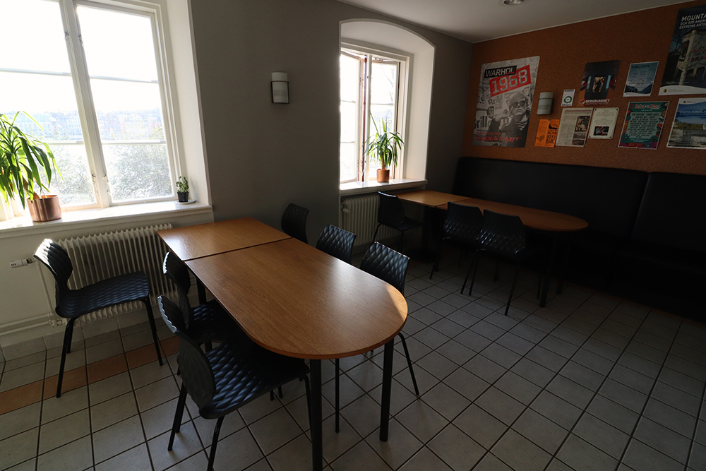 Juste en face se trouve le bâtiment appartenant aussi à l’association STF (Svenska Turistföreningen). C’est ici que je loge. Il y a la réception, un café avec terrasse, la cuisine commune, la salle de petit-déjeuner, des espaces en commun, de nombreux dortoirs et chambres. J’étais en chambre privée et même mieux, avec douche et toilette privatifs. Grand luxe ! Je ne m’attendais pas à tant mais comme la période étant un peu creuse, j’ai dû être un peu « surclassée ».