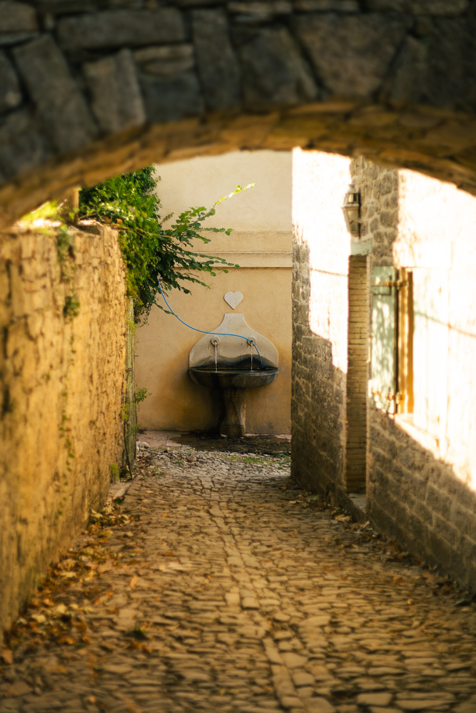 Un peu plus haut, ma partie préférée. « Hameau » prend tout son sens. On se croirait dans un mini village médiéval. Le ruisseau coule, les vieilles pierres confèrent aux bâtiments, classés monuments historiques, toute leur splendeur, la chapelle assoit encore plus l’âme du lieu. On ne fait que traverser cette partie aujourd’hui mais les bâtiments sont en cours de rénovation. On parle d’un four dans lequel on pourrait faire du pain ou de la céramique; à suivre !