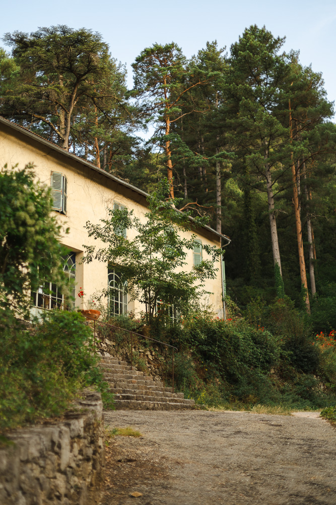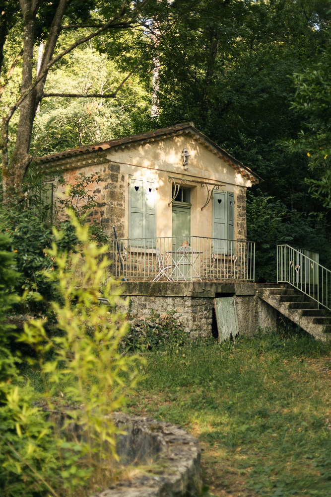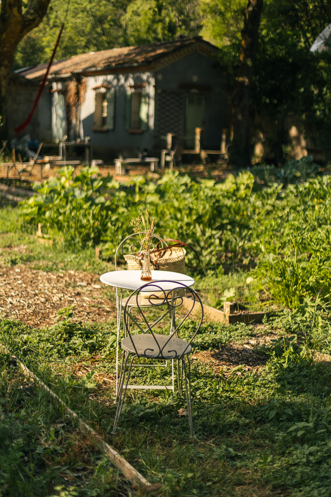 L’émerveillement continue avec le potager où se trouve également le cabanon du potager (140€ la nuit) et le bâtiment Eiffel avec sa salle de restaurant sublime qui sera investie prochainement et plusieurs chambres (120€ la nuit). La forêt au-dessus est hypnotisante. J’ai l’habitude de ces forêts varoises en Provence Verte, mais ici les conifères apportent une splendeur en plus. Evidemment, en été, en plus des odeurs de forêts, ruisseaux, il y a le chant des cigales.